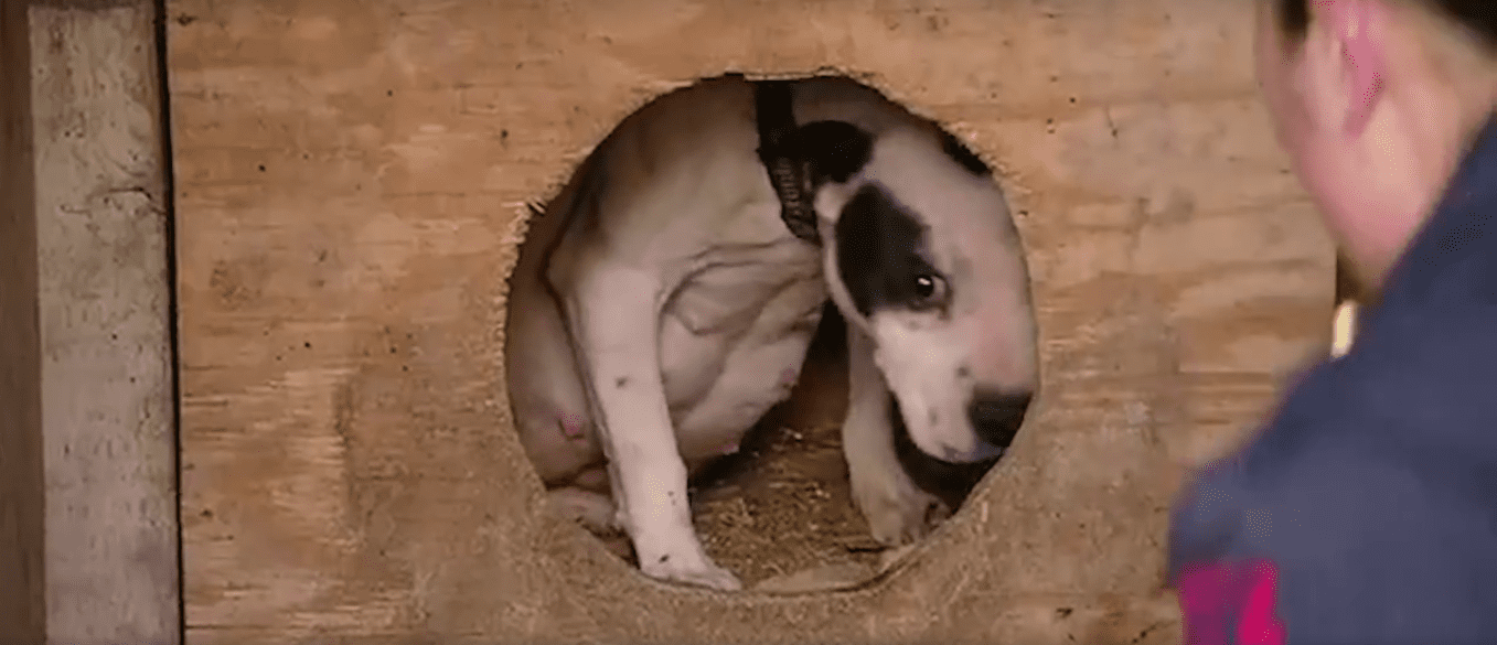 This pregnant dog had no idea help was on the way. This courageous dog about to give birth was rescued from a fighting ring. New Theory supports those who support animals. #AdoptDontShop Source: YouTube / The Dodo